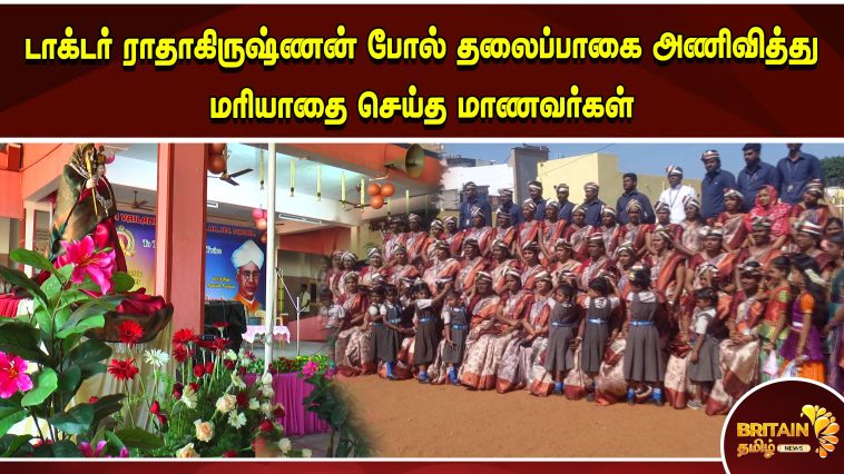 டாக்டர் ராதாகிருஷ்ணன் போல் தலைப்பாகை அணிவித்து மரியாதை செய்த மாணவர்கள்