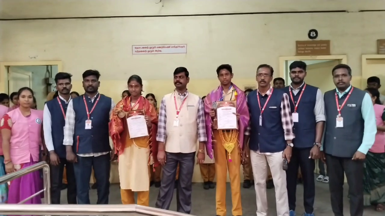 சாதனை படைத்துள்ள இருவரையும் பாராட்டி சந்தன மாலை,சால்வை அணிவித்து பள்ளிக்கு உற்சாகத்துடன் வரவேற்பு அளித்தனர்.
