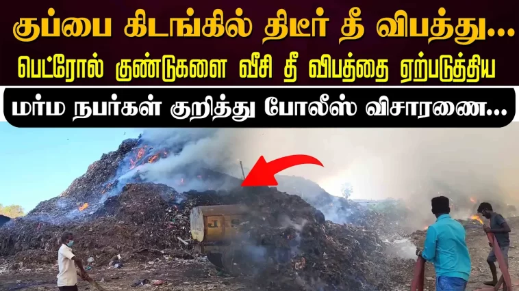 சம்பவ இடத்திற்கு விரைந்து வந்து அதிகாரிகள் மர்ம நபர்கள் பெட்ரோல் குண்டுகளை வீசி குப்பை கிடங்கை தீயிட்டு கொளுத்தி இருப்பது தெரியவந்துள்ளது.