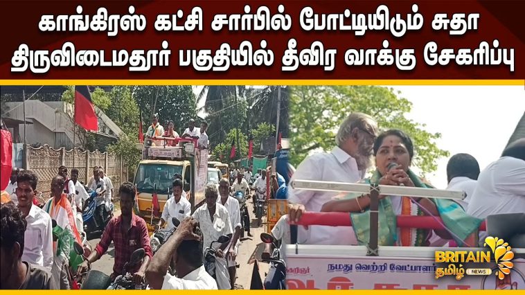 இண்டியா கூட்டணி கட்சி சார்பில் மயிலாடுதுறை நாடாளுமன்ற வேட்பாளராக காங்கிரஸ் கட்சி சார்பில் போட்டியிடும் சுதா திருவிடைமதூர் பகுதியில் தீவிர வாக்கு சேகரிப்பு