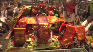 லகுருத்திரத்தை 11 முறை கூறினால் அது மகா ருத்ரம் ஆகும். ) இரண்டாம் நாளான இன்று காலை மஹான்யாசம் நடைபெற்றது. தொடா்ந்து ஸ்ரீருத்ரம் 11 ஆவா்த்திகள் நடைபெற்று மகா பூா்ணாகுதி மற்றும் வசோதரை ஹோமம் நடைபெற்றது.