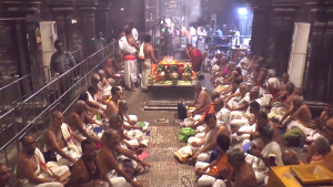 தொடா்ந்து 60 க்கும் மேற்பட்ட வேத விற்பனா்களால் ஸ்ரீ ருத்ரஜெப ஆவா்த்திகள் 11 முறை நடைபெற்றது. ( ருத்ரத்தை ஒருமுறை ஓதி அதைத் தொடா்ந்து சமகத்தில் உள்ள முதல் பகுதியையும் ஒவ்வொரு முறை ருத்திரம் முடிந்த பின் சமகத்தில் உள்ள அடுத்த பகுதியை சோ்த்து 11 முறை கூறி பாராயணம் செய்தால் அது ருத்திர ஏகாதசி ஆகும். இதை 11 நபா்கள் ஒவ்வொருவரும் 11 முறை கூறினால் அது லகுருத்திரம் எனப்படும்.