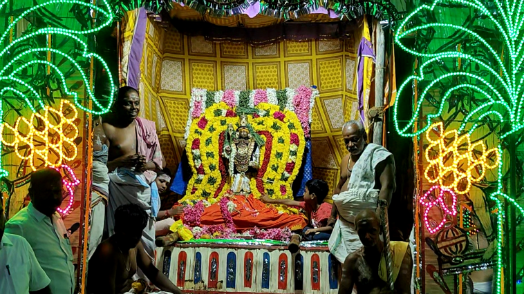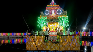 தொடர்ந்து இன்றிரவு தங்கமயில் வாகனத்தில் சுவாமி திருவீதியுலாவும் தொடர்ந்து நேத்தர புஷ்கரணியில் அழகிய பலவண்ண மின்விளக்குகளால் அலங்கரிக்கப்பட்ட தெப்பத்திற்கு சுவாமி எழுந்தருள, தெப்போற்சவமும் சிறப்பாக நடைபெற்றது.