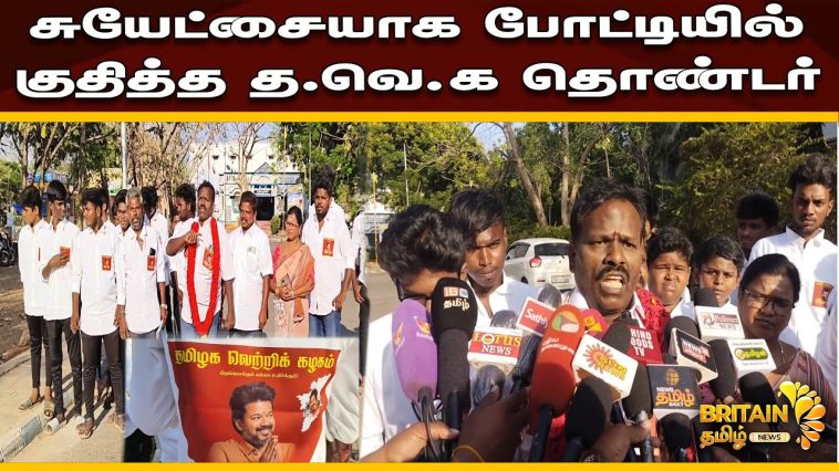 திண்டுக்கல் மாவட்டத்தில் இன்று நடைபெற்ற வேட்பாளருக்கான சின்னம் ஒதுக்கீடு நிகழ்ச்சிக்கு வருகை தந்த திண்டுக்கல் கிழக்கு ஆரோக்கியமாக தெரிவித்திருந்த அன்பு ரோஸ் என்ற சுயேட்சை வேட்பாளர் நடிகர் விஜயின் தமிழக வெற்றி கூட்டணி என்று விஜய் படத்துடன் அச்சிடப்பட்ட பனியனுடன் கலந்து கொண்டார் அவருக்கு ஆட்டோ சின்னம் சின்னமாக ஒதுக்கீடு செய்யப்பட்டுள்ளது இது குறித்து வேட்பாளர் அன்பு ரோஸ் கூறும்போது நடிகர் விஜயின் தீவிர ரசிகன் அவர் தமிழக வெற்றி கழகம் என்ற கட்சியை தொடங்கியுள்ளார்