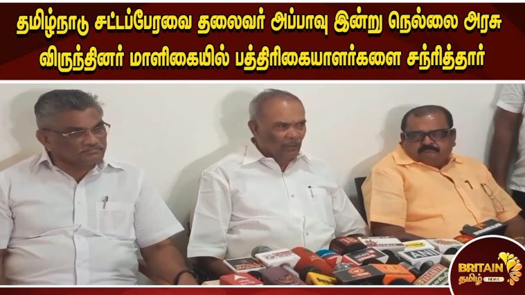 தமிழ்நாடு சட்டப்பேரவை தலைவர் அப்பாவு இன்று நெல்லை அரசு விருந்தினர் மாளிகையில் பத்திரிகையாளர்களை சந்ரித்தார்.