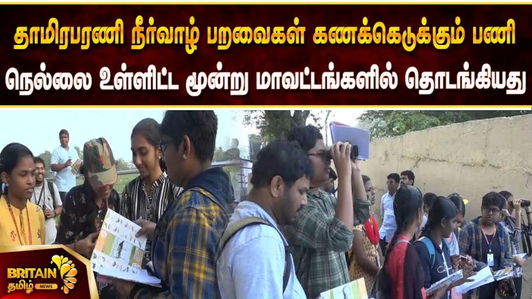 தாமிரபரணி நீர்வாழ் பறவைகள் கணக்கெடுக்கும் பணி நெல்லை உள்ளிட்ட மூன்று மாவட்டங்களில் தொடங்கியது. கல்லூரி மாணவர்கள் சமூக ஆர்வலர்கள் என 200க்கும் மேற்பட்டோர் இந்த கணக்கெடுக்கும் பணியில் பங்கேற்றுள்ளனர்.