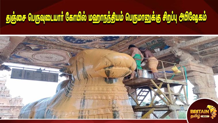 தஞ்சை பெருவுடையார் கோயில் மஹாநந்தியம் பெருமானுக்கு சிறப்பு அபிஷேகம்