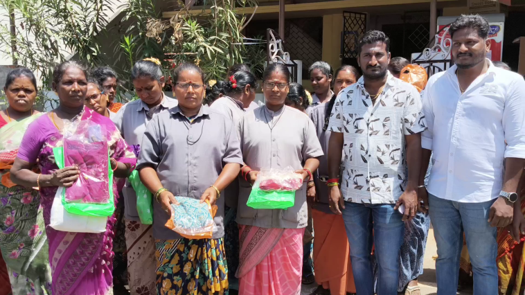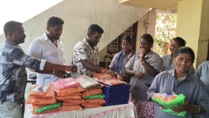 தங்கள் பகுதியை தூய்மையாக வைத்துக் கொள்ளும் தூய்மை பணியாளர்களை கெளரவிக்கும் வகையில் 40 தூய்மைப் பணியாளருக்கு புடவை – இனிப்பு வழங்கிய வாடகை கார் ஓட்டுநர்கள்.