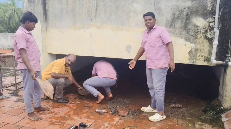 அரசு மேல்நிலைப் பள்ளியில் மாணவர்களை வைத்து குடிநீர் தொட்டிக்கு கீழே சுத்தம் செய்யும் ஆசிரியர்….