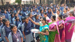பிளஸ் 2 பொதுத்தேர்வில் அதிக மதிப்பெண் பெற வேண்டி மாணவிகளுக்கு நெற்றில் திலகமிட்ட ஆசிரியர்கள்…..