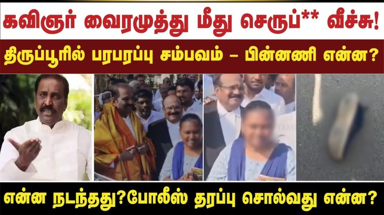 அந்த நேரத்துல அங்க போராட்டத்துல ஈடுபட்டுட்டு இருந்த ஒரு பெண், திடீர்னு வைரமுத்துவை நோக்கித் தன்னோட செருப்பை வீசுனாங்க. இதை எதிர்பார்க்காத அங்கிருந்தவங்க அதிர்ச்சியடைஞ்சாங்க.