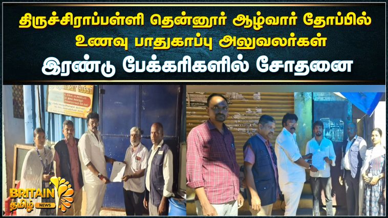 பொது மக்களிடம் இருந்து வரப்பெற்ற புகாரை அடுத்து மாவட்ட நியமன அலுவலர் டாக்டர் ரமேஷ்பாபு தலைமையில் உணவு பாதுகாப்பு அலுவலர்கள் கொண்ட குழு திருச்சிராப்பள்ளி மாவட்டம் தென்னூர் ஆழ்வார் தோப்பில் இரண்டு பேக்கரிகளில் சோதனை செய்தனர்.