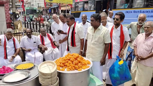 மயிலாடுதுறையில் மறுமலர்ச்சி திராவிட முன்னேற்ற கழகத்தின் 32 ஆம் ஆண்டு துவக்கத்தினை முன்னிட்டு பொதுமக்களுக்கு இனிப்புகளுடன் கூடிய அன்னதானம் வழங்கப்பட்டது மாவட்ட செயலாளர் பங்கேற்பு.