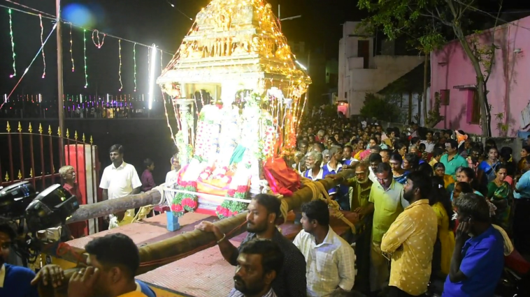 சுவாமியும் அம்பாளும் வெள்ளி சப்பரத்தில் மின்னலங்காரத்தில் தெப்பத்தை வளம் வந்து நான்காவது வீதிகளில் உலா வந்தனர் வழி நெடுக கிராம மக்கள் மற்றும் பக்தர்கள் சுவாமி அம்பாளை வரவேற்று பூஜைகள் செய்தனர்.