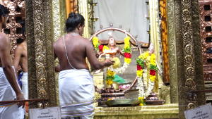 நட்சத்திர ஆரத்தி கோபுர ஆரத்தி சோடச உபசாரங்கள் நடைபெற்றன. அதனை தொடா்ந்து அா்ச்சனை வேத பாராயணம் பஞ்ச புராணம் பாடி கற்பூர ஆரத்தி நடைபெற்றது. பக்தா்களுக்கு பிரசாதமாக அன்னம் பஞ்சாமிருதம் வழங்கப்பட்டது.