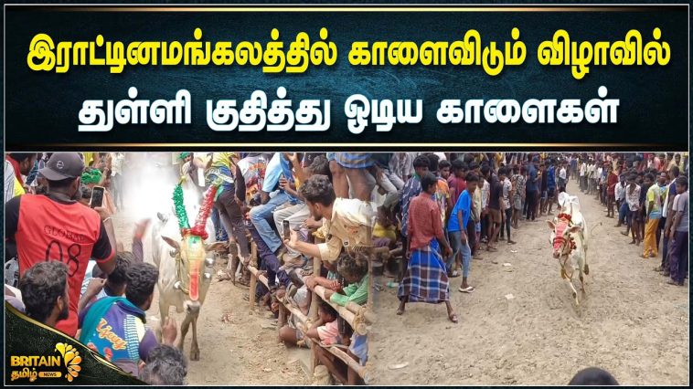 இராட்டினமங்கலத்தில் காளைவிடும் விழாவில் துள்ளி குதித்து ஓடிய காளைகள்