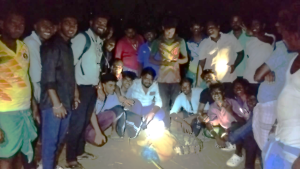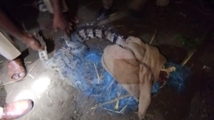 அப்பொழுது முதலையை விட வெகுண்டு எழுந்த இளைஞர்கள் முதலையினை மீன் பிடி வலைகள் மூலமாகவும், சாக்கு பைகளை கொண்டும் ஒரு வழியாக போராடி முதலையனை பிடித்தனர்.