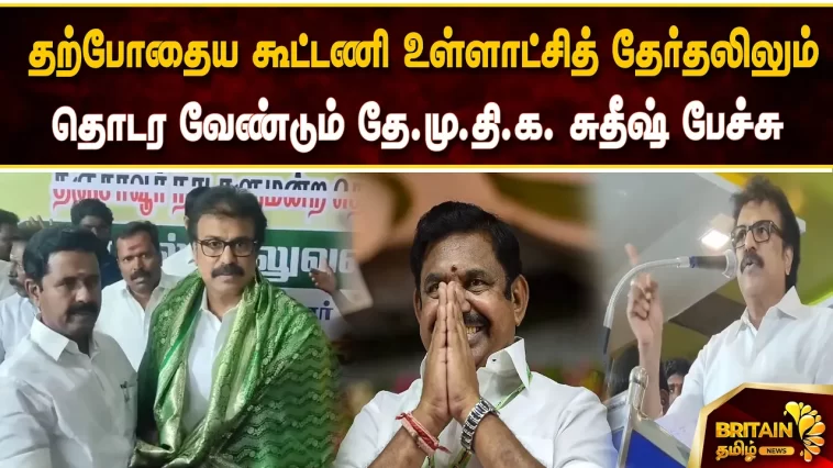 தற்போதைய கூட்டணி உள்ளாட்சித் தேர்தலிலும் தொடர வேண்டும் தே மு தி க சுதீஷ் பேச்சு