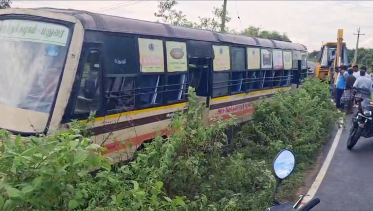 ஓட்டுனரின் கட்டுப்பாட்டை இழந்த அரசு பேருந்து சாலையோர பள்ளத்தில் இறங்கியது