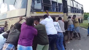 பேருந்தில் இருந்த பயணிகள் அனைவரும் அதிர்ஷ்டவசமாக காயங்கள் ஏதுமின்றி உயிர் தப்பினர்.