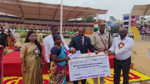 அதனை தொடர்ந்து காவல்துறை, தீயணைப்புத்துறை, ஊர்காவல்படை, வனத்துறை, தேசிய மாணவர் படையினர் ஆகியோர் அணிவகுப்பு மரியாதையை அவர் ஏற்றுக்கொண்டார். தொடர்ந்து மூவர்ண பலுனையும் பறக்கவிட்டார். பின்னர் காவல்துறையில் சிறப்பாக பணியாற்றிய 113 காவலர்களுக்கு தமிழ்நாடு முதலமைச்சர் பதக்கங்களையும், அரசுதுறையில் சிறப்பாக பணியாற்றிய அரசு வழக்கறிஞர் உள்பட 446 பேருக்கு நற்சான்றுகளையும் வழங்கினார்.