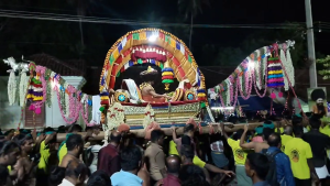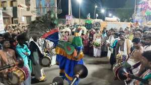 யானைகள் ஒட்டகங்கள் குதிரைகள் முன்னே செல்ல மல்லாரி இசை நிகழ்ச்சியுடன் தருமபுர ஆதீனத்தின் மடாதிபதி சிபிகை பல்லக்கில் நான்கு மாட வீதிகளில் வீதி உலா வந்தார்.
