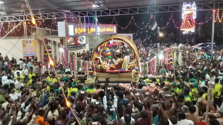 தொடர்ந்து நான்கு மாட வீதிகளில் வழியே பல்லக்கு ஊர்வலம் நடைபெற்றது வீடுகள் தோறும் விளக்கேற்றி வைத்து பொதுமக்கள் வழிபாடு செய்தனர் நிகழ்ச்சியில் மதுரை ஆதீனம் மடாதிபதி சூரியனார் கோயில் ஆதீன மடாதிபதி உள்ளிட்ட மடங்களின் ஆதீன கர்த்தர்கள் கட்டளைத் தம்பிரான் சுவாமிகள், உள்ளிட்டோர் நிகழ்ச்சியில் பங்கேற்றனர்.