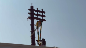 பின்னா் கொடி பட்டத்திற்கு பூஜைகள் நடைபெற்று கொடி ஏற்றப்பட்டது. தொடா்ந்து கொடி மரத்திற்கு அபிஷேகங்கள் நடைபெற்று புது வஸ்திரம் சாற்றப்பட்டது. பெருமாளுக்கும் கொடிமரத்திற்கும் நட்சத்திர ஆரத்தி காண்பிக்கப்பட்டது.