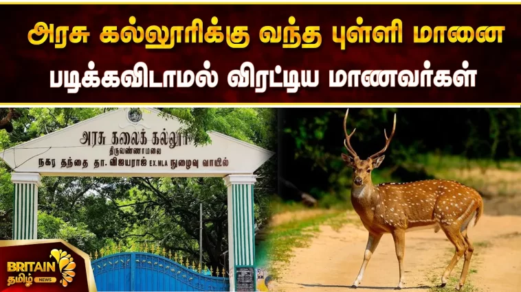 இந்நிலையில் இன்று காப்பு காட்டுப் பகுதியில் இருந்து புள்ளிமான் திருவண்ணாமலை கலைஞர் அரசு கலைக் கல்லூரி வகுப்பறைக்குள் புகுந்தது.