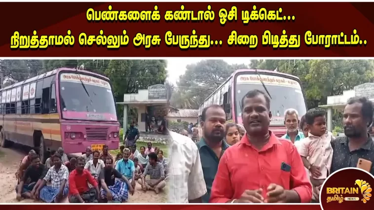 வேடசந்தூரில் பெண்களைக் கண்டால் ஓசி டிக்கெட் என்று நிறுத்தாமல் செல்லும் அரசு பேருந்தை சிறை பிடித்து போராட்டம் நடத்திய கிராம மக்கள்