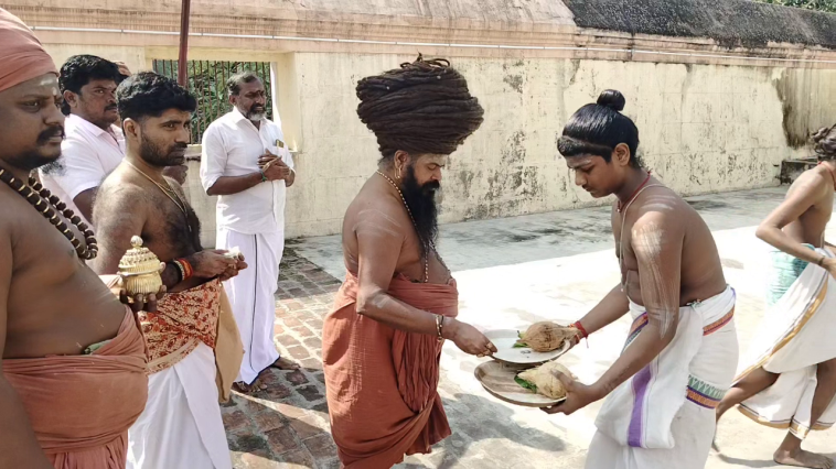 கோயிலில் தருமபுரம் ஆதீனகர்த்தர் சிறப்பு வழிபாடு மேற்கொண்டார்.
