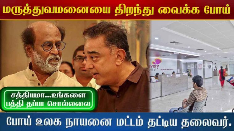 அப்படிப்பட்ட இந்த மருத்துவமனையின் ஒரு கிளையை நான் திறந்து வைப்பதற்கு பெருமையாக இருக்கிறது. அவ்வளவு நேரம் நல்லதா பேசிட்டு இருங்க தலைவரே திடீர்னு உலக நாயகனே வெச்சு இடையில ஒரு காமெடி பண்ணினாரா இல்ல அவரை மட்டம் தட்டுனாருன்னு தெரியல…இன்னு மேடைகள் கிசுகிசுத்தது ..
