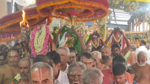 இந்த நிலையில் பணிகள் நிறைவு பெற்ற சூழலில் மகா சம்ப்ரோக்ஷண விழா கடந்த ஆறாம் தேதி பகவத் பிரார்த்தனை உடன் தொடங்கியது தொடர்ந்து அக்னி பிரதிஷ்டை யாகசாலை பூஜைகள் உள்ளிட்டவைகள் நடைபெற்று இன்றைய தினம் காலை மகா கும்பாபிஷேகம் வெகு விமர்சையாக நடைபெற்றது. இதனை ஒட்டி காலை முதல் பல்வேறு சிறப்பு யாக பூஜைகள் நடத்தப்பட்டு நான்கு நாட்களாக யாகசாலையில் வைத்து பூஜை செய்யப்பட்ட மகா கும்பங்கள் ஊர்வலமாக எடுத்துவரப்பட்டது.