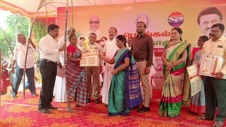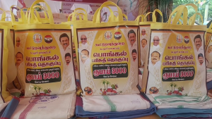 பொங்கல் பரிசு தொகுப்புகளான ரூ.3000 ஆயிரம் மற்றும் ஒரு கிலோ அரிசி, ஒரு கிலோ சர்க்கரை, விட்டு சேலை, மற்றும் ஒரு முழு கரும்பு ஆகியவற்றை குறிஞ்சிப்பாடி சட்டமன்ற உறுப்பினரும், வேளாண்மை மற்றும் உழவர் நலத்துறை அமைச்சருமான எம்.ஆர்.கே. பன்னீர்செல்வம் குடும்ப அட்டைதாரர்களுக்கு வழங்கினார்.