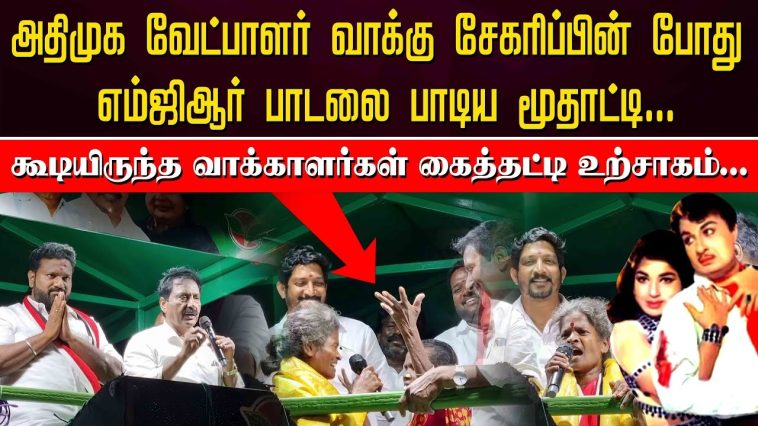 அதிமுக வேட்பாளர் வாக்கு சேகரிப்பின் போது விரும்பி வந்து எம்ஜிஆர் பாடலை பாடிய மூதாட்டி… கூடியிருந்த வாக்காளர்கள் கைத்தட்டி உற்சாகம்…