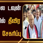 அப்போது திருக்காஞ்சி அகரம் கிராமத்தில் வேனில் இருந்து இரட்டை இலைக்கு வாக்கு சேகரித்தார்.