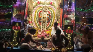 இதையடுத்து நேற்று இரவு அம்மனுக்கு முத்துமணிச் சிவிகையில் புஷ்ப அலங்காரம் செய்யப்பட்டு மின் விளக்குகளால் அலங்கரிக்aப்பட்ட பிரமாண்ட பல்லக்கில் உற்சவ அம்மன் எழுந்தருளி பக்தர்களுக்கு அருள் பாலித்தார்.