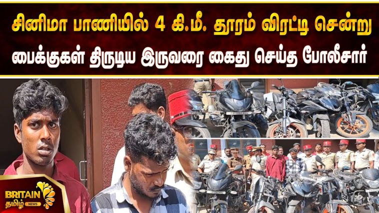 பைக்குகள் திருடிய இருவரை சினிமா பாணியில் 4 கி மீ தூரம் விரட்டி சென்று கைது செய்த போலீசார்