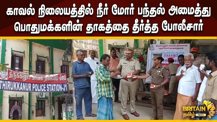 பொதுமக்களும் ஆர்வமுடன் வங்கி மோரை அருந்தி சென்றனர் சென்றனர். பல்வேறு அரசியல் கட்சிகள் நீர் மோர் பந்தல் அமைத்து பொது மக்களுக்கு வழங்கும் நிலையில், பொதுமக்கள் நலன் கருதி காவல்துறை உங்கள் நண்பன் என்பதை நிரூபிக்க வகையில் காவல் நிலையத்தில் போலீசார் நீர் மோர் பந்தல் அமைத்து பொது மக்களுக்கு வழங்கியது அனைவரது மத்தியிலும் பாராட்டை குவித்து வருகிறது.