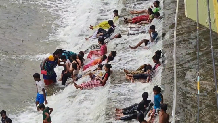 கொளுத்தும் கோடை வெயிலில் குளுகுளுவென வைகையாற்றில் உற்சாகமாக குளித்துமகிழும் பொதுமக்கள் – சுற்றுலா தளம்போல மாறிய வைகையாறு – மதுரை மட்டுமின்றி பல்வேறு மாவட்டங்களை சேர்ந்த சுற்றுலாபயணிகளும் வருகைதந்து குளித்து செல்கின்றனர்.