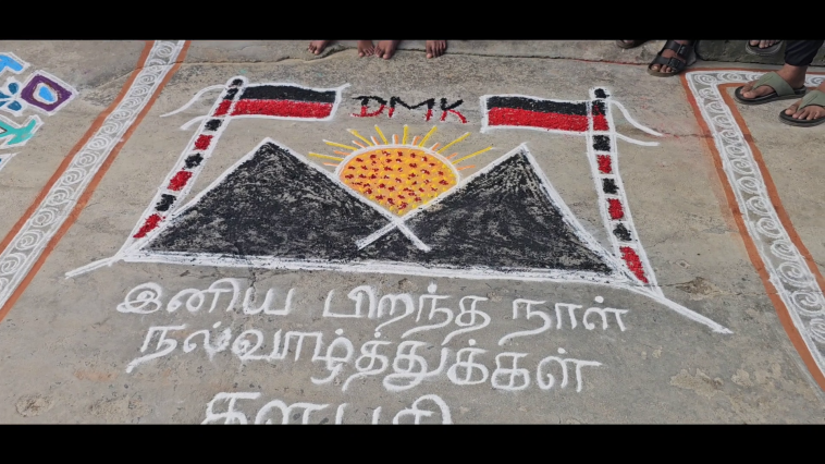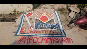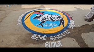 அதேபோல் ஒன்றிய அரசு மும்மொழி கொள்கை மூலம் இந்தி திணிப்பை எதிர்க்கும் வகையில் தமிழ் வாழ்க இந்தி ஒழிக,ஹிந்தி வேணாம் போடா என்ற வாசகத்துடன் பெண்கள் கோலமிட்டு தங்களது எதிர்ப்பை தெரிவித்தனர்.