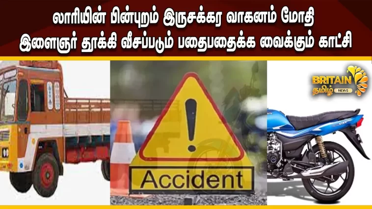 லாரியின் மீது அதிவேகத்தில் வந்த இருசக்கர வாகன மோதி இளைஞர் தூக்கி வீசப்பட்ட காட்சிகள் அதில் பதிவாகியுள்ளது. மேலும் இளைஞர் உயிரிழந்த இடத்தில் அவரது உறவினர்கள் கதறி அழுத சம்பவம் காண்போரை கண்கலங்க வைத்தது.