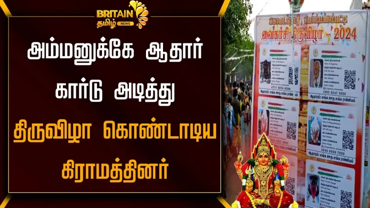 அம்மனுக்கே ஆதார் கார்டு அடித்து திருவிழா கொண்டாடிய கிராமத்தினர்,நிலக்கோட்டை அருகே பொம்மனம்பட்டி கிராமத்தில் 400-ஆண்டு பழமையான காளியம்மன்,பகவதியம்மன் கோவில் வைகாசி திருவிழாவில் அம்மன் பூங்கராத்தில் ஊர்வலம் வந்து பக்தர்களுக்கு அருள்பாளித்தார்