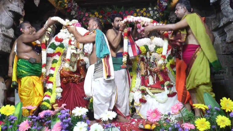 தொடா்ந்து சுவாமி அம்பாளுக்கு நலுங்கு இட்டு பாலும் பழமும் கொடுத்து சப்தபதி பொாியிடுதல் போன்றவை நடைபெற்றன. வேதியா்கள் மந்திரங்கள் ஓத, ஓதுவாமூா்த்திகள் திராவிட வேதம் பாட மகா தீபாராதனை நடைபெற்றது. இந்த விழாவில் ஆயிரக்கணக்கான பக்தர்கள் கலந்துகொண்டு சுவாமி தரிசனம் செய்திருந்தனர்.
