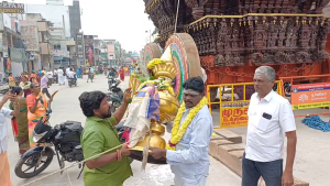 பஞ்ச மூர்த்திகள் மர தேருக்கு கலசங்கள் பொருத்தும் பணிகள் நிறைவு…..