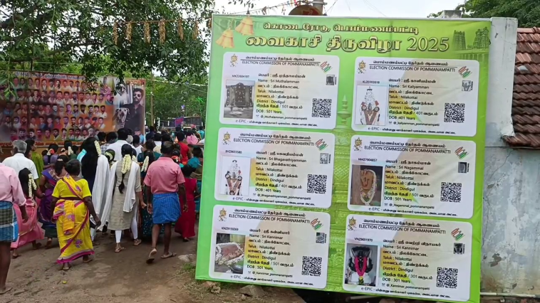 கொடைரோடு அருகே காளியம்மன்,பகவதி அம்மன் கோவில் வைகாசி திருவிழாவில், அம்மனுக்கே வாக்காளர் அட்டை அடித்து அட்ராசிட்டி செய்த இளைஞர்கள்.