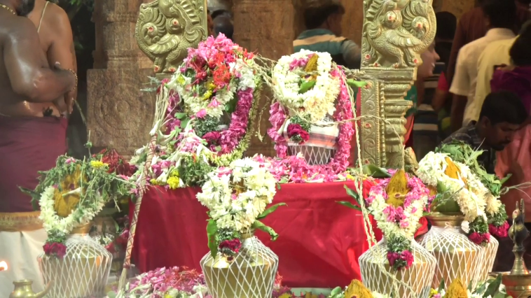 பின்னர் அலங்கரிக்கப்பட்ட கலசத்திற்கு வேத மந்திரங்கள் முழங்க கோடி தீபம் கும்ப தீபம் மயில தீபம் யானை சிங்கம் உள்ளிட்ட தீபங்கள் காண்பித்து ஷோடஷ உபசாரங்கள நடைபெற்றது.
