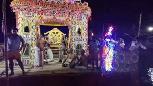 சீர்காழி தாடாளன் பெருமாள் கோயிலில் தெப்ப உற்சவம். ஆண்டாளுடன் பெருமாள் சக்கரை தீர்த்தம் சங்கம புஷ்கரணி எழுந்தருளி 3முறை வலம்.