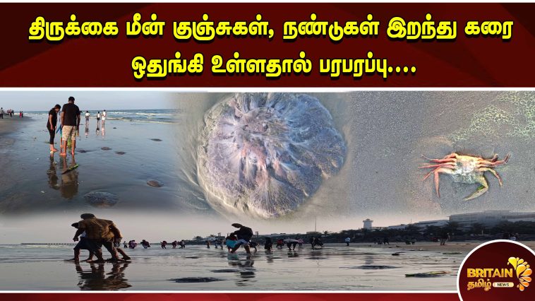 திருக்கை மீன் குஞ்சுகள், நண்டுகள் இறந்து கரை ஒதுங்கி உள்ளதால் பரபரப்பு….
