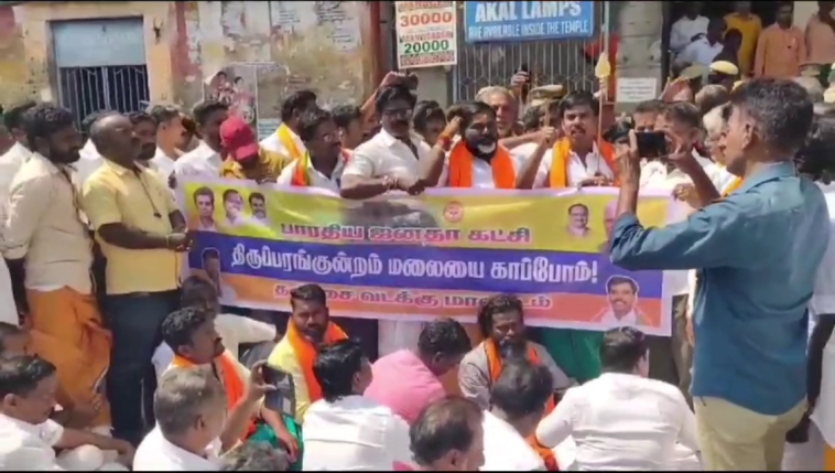 நூற்றுக்கும் மேற்பட்ட பாஜக நிர்வாகிகளும் கோயிலுக்குள் செல்ல முயன்றதால் பரபரப்பு